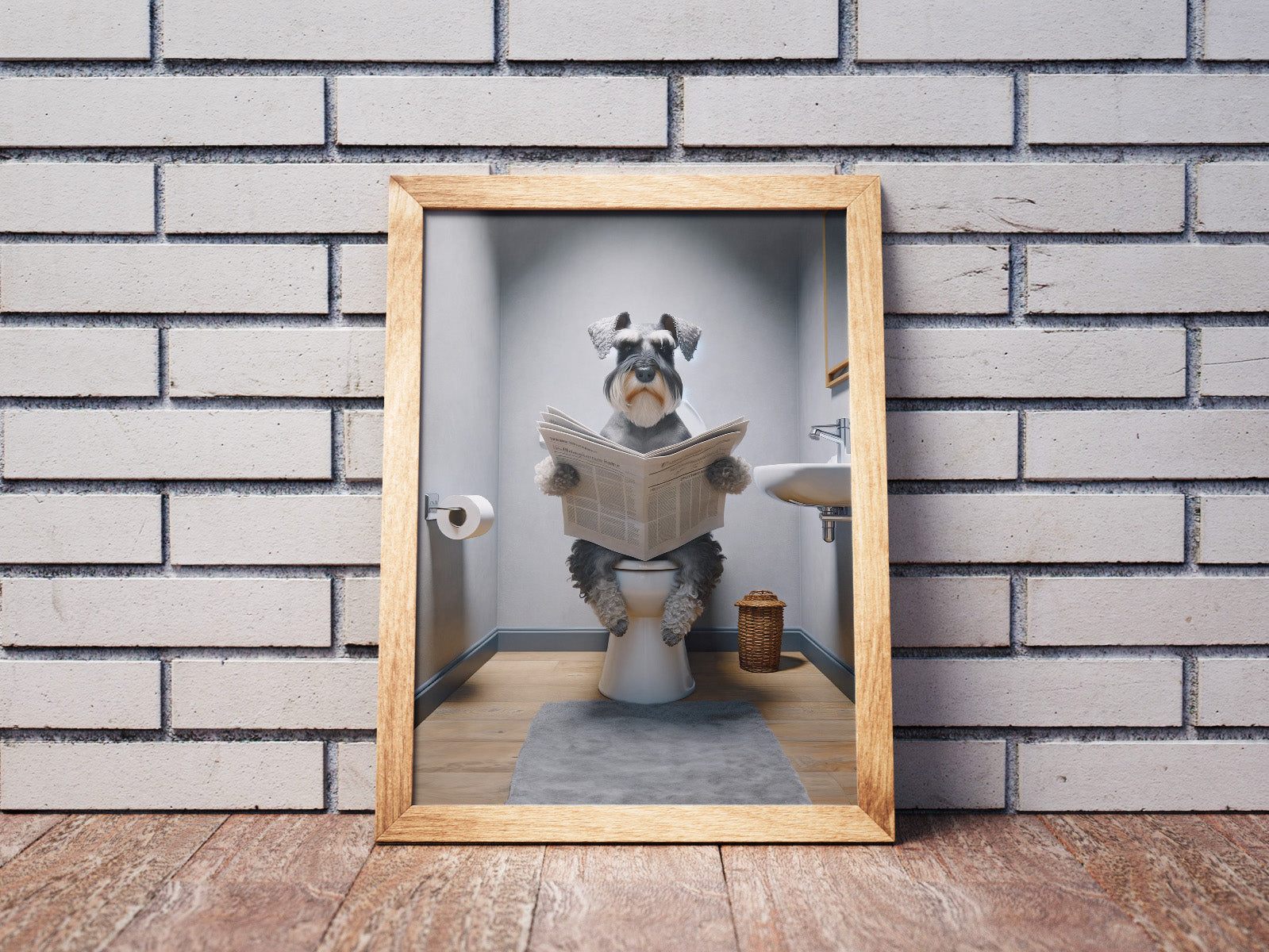 Are you looking for a way to add a touch of humor and personality to your bathroom decor? Look no further than our unique "Photograph of a Miniature Schnauzer Reading the Newspaper on the Toilet" poster. This piece of bathroom wall art is not just a gag gift; it's a conversation starter, a mood lifter, and a testament to your impeccable taste in home decor.