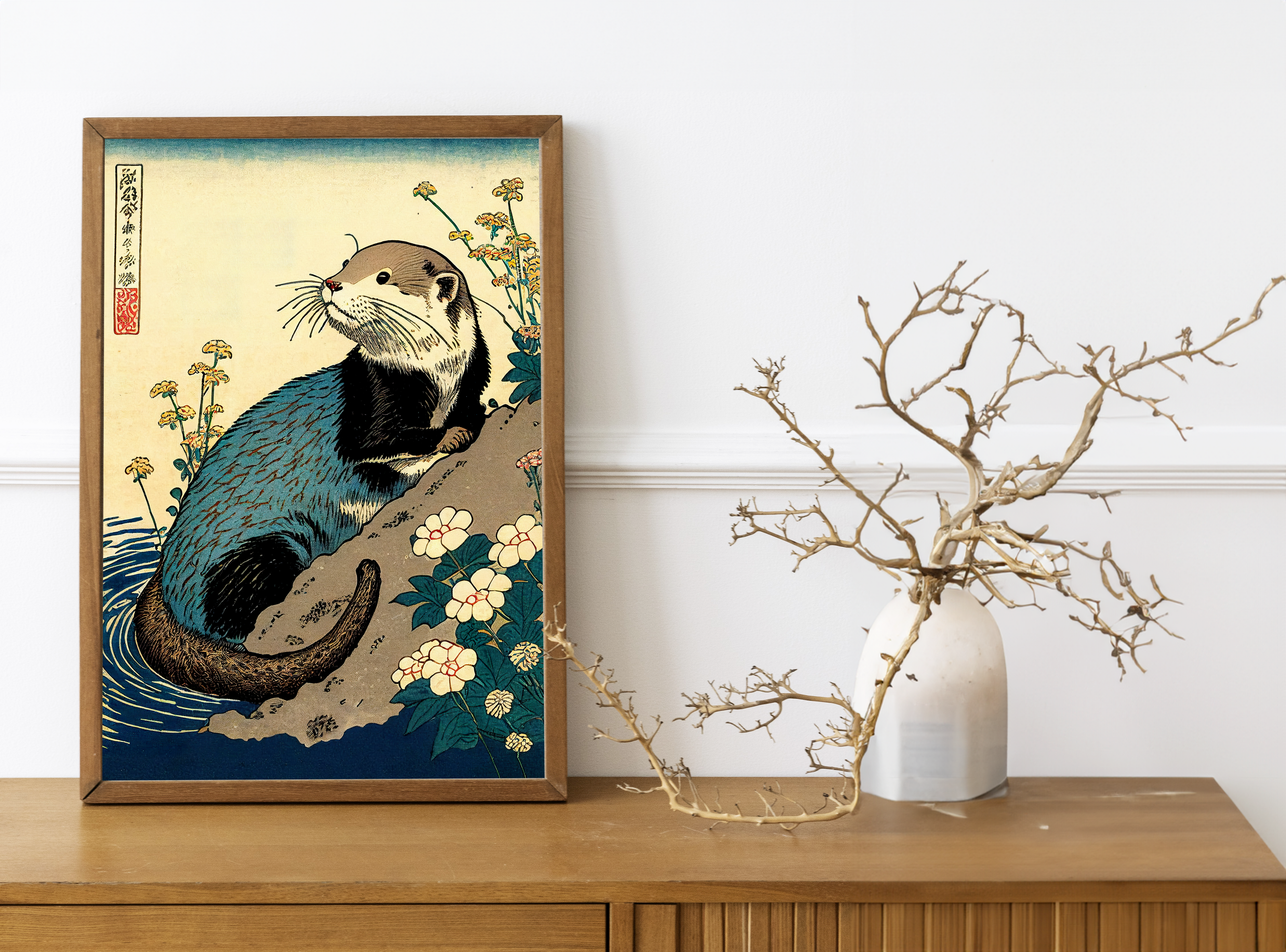 Japanese Red Panda Poster - Ukiyo-e Style Wall Art Illustration, Japan Print Decor, Red Panda Wall Decoration