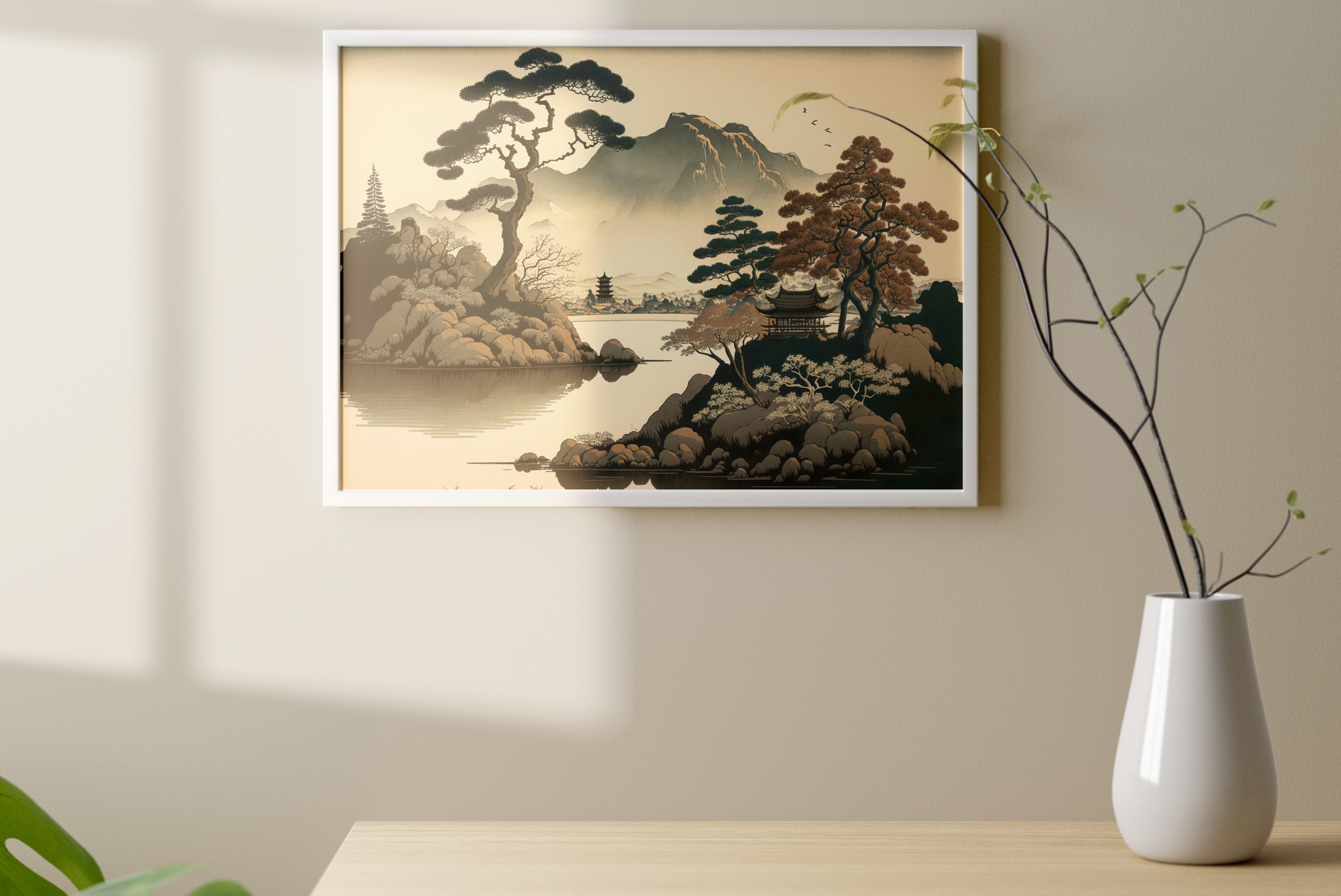 Japanese Village Wall Poster in the Rain – Japanese Art Style Illustration, Rainy Japan Poster for Framing, Home Decor
