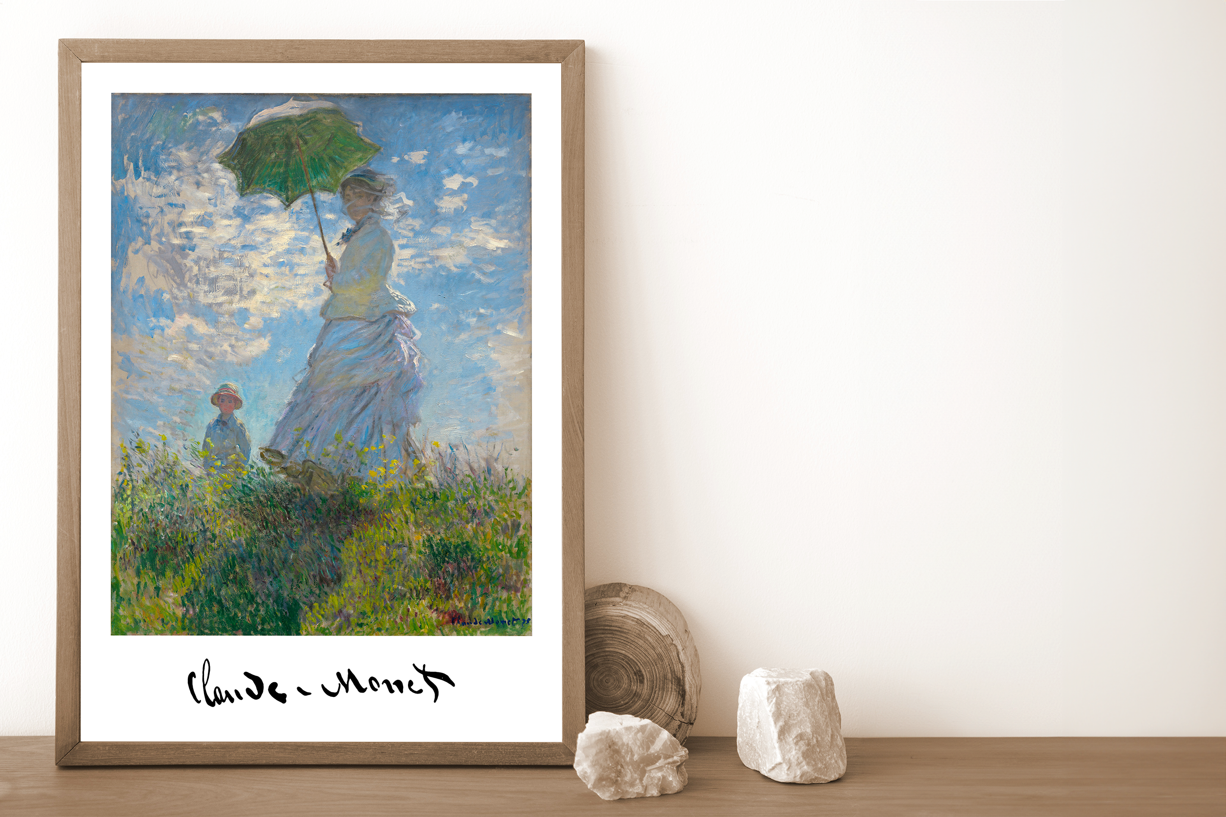 Elegant Japanese Geisha Poster in Blue Kimono - Traditional Art Style for Sophisticated Home Decor