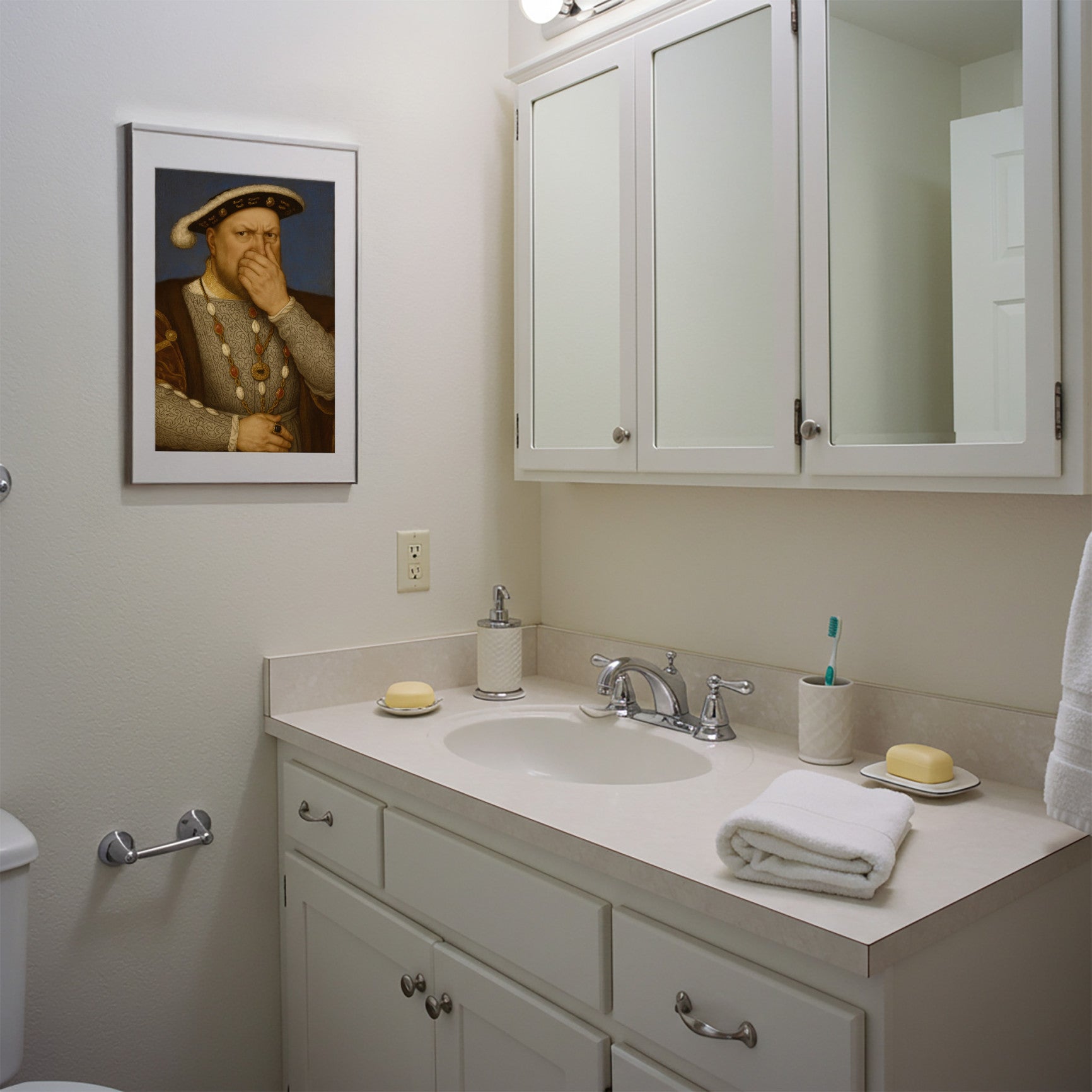 Funny Portrait of Henry VIII Pinching His Nose – The Ultimate Bathroom Poster for Toilet Humor