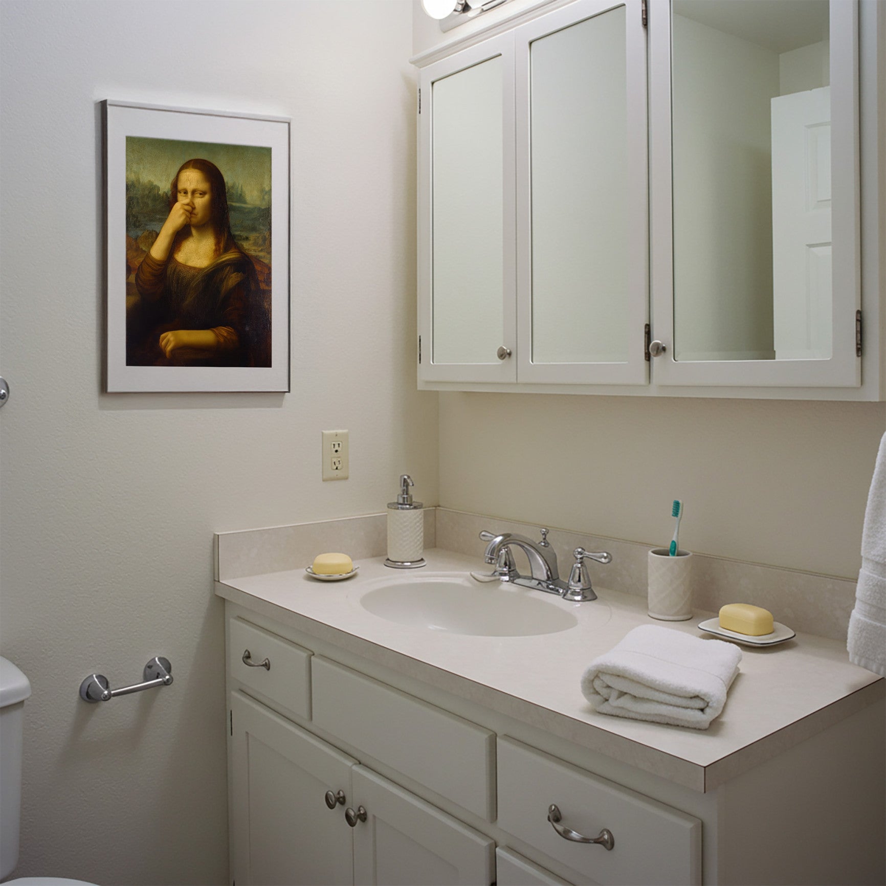 Sometimes, all it takes is a touch of humor to turn an ordinary bathroom into a delightful escape. Our "Mona Lisa Pinching Her Nose" poster is more than just wall decor; it’s a statement piece that shows you don't take life too seriously. The joy of this artwork is in the unexpected twist on a cultural icon, turning a traditional portrait into a lighthearted chuckle-inducing decoration.