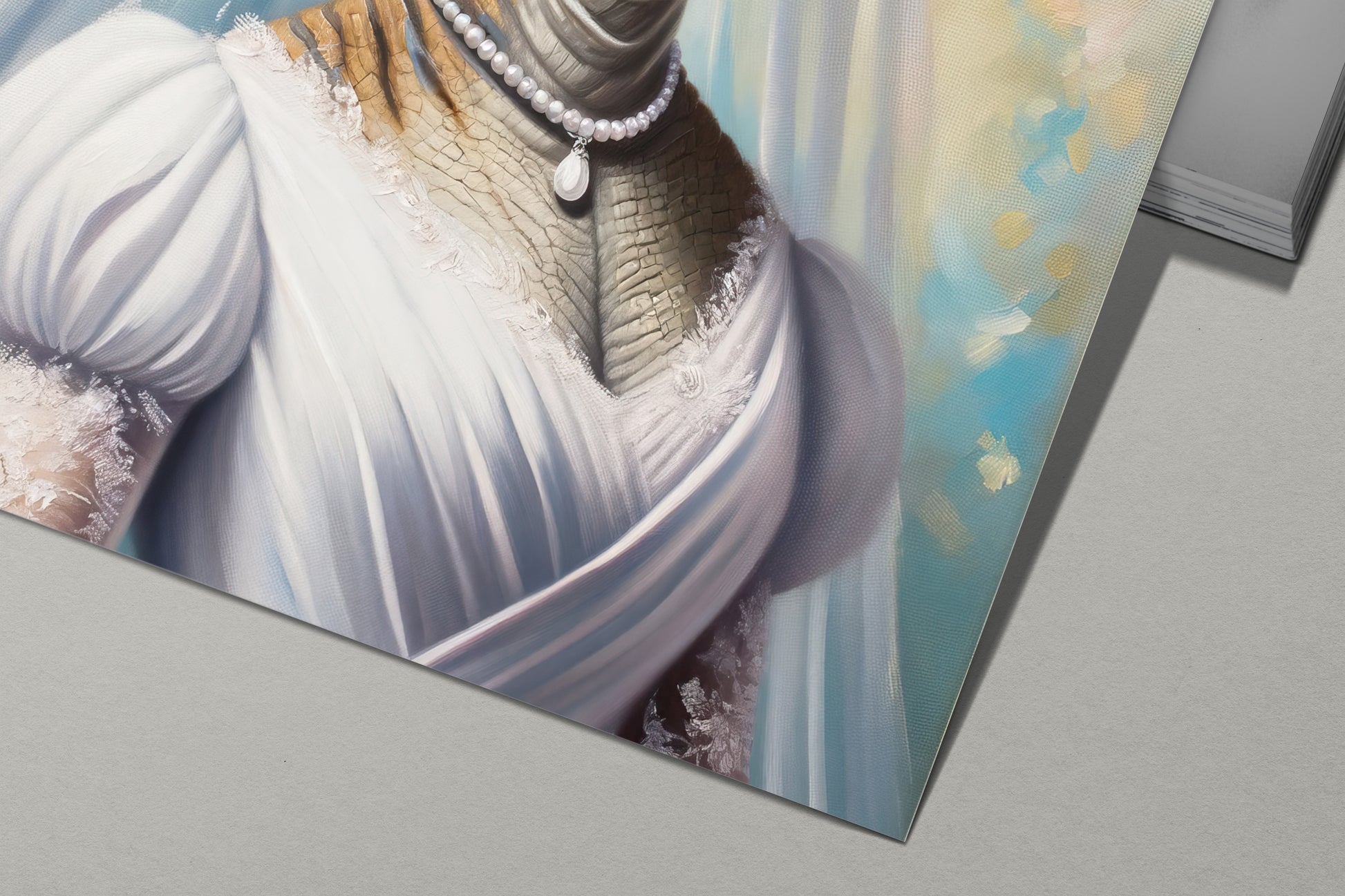 Que vous cherchiez à faire un cadeau mémorable ou à injecter un peu de légèreté et d'humour dans votre espace, notre affiche murale mariée est un choix parfait. Son design créatif et son exécution de qualité en font une pièce de décoration exceptionnelle, capable d’apporter un sourire sur le visage de chacun. Ajoutez une touche d'originalité à votre intérieur avec ce portrait d'une vélociraptor en robe de mariée.